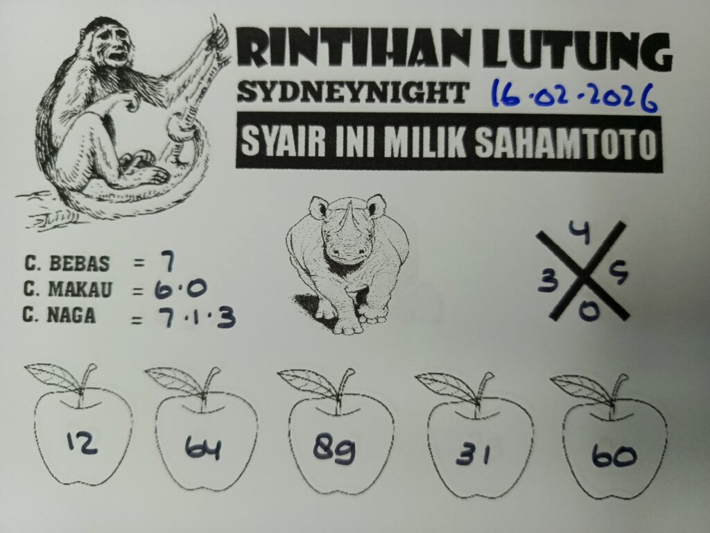 Syair Rintihan lutung Sydney Night Hari ini Senin 16 Februari 2026