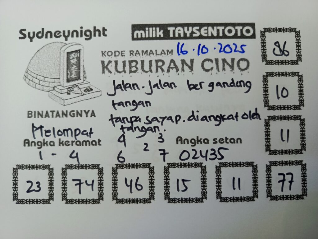 Syair Kuburan Cino SydneyNight Hari ini Kamis, 16 Oktober 2025