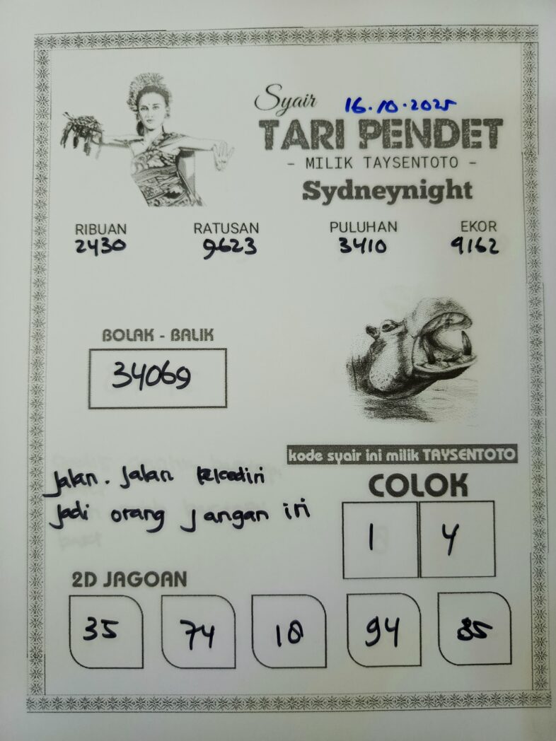 Syair Tari Pendet SydneyNight Hari ini Kamis, 16 Oktober 2025