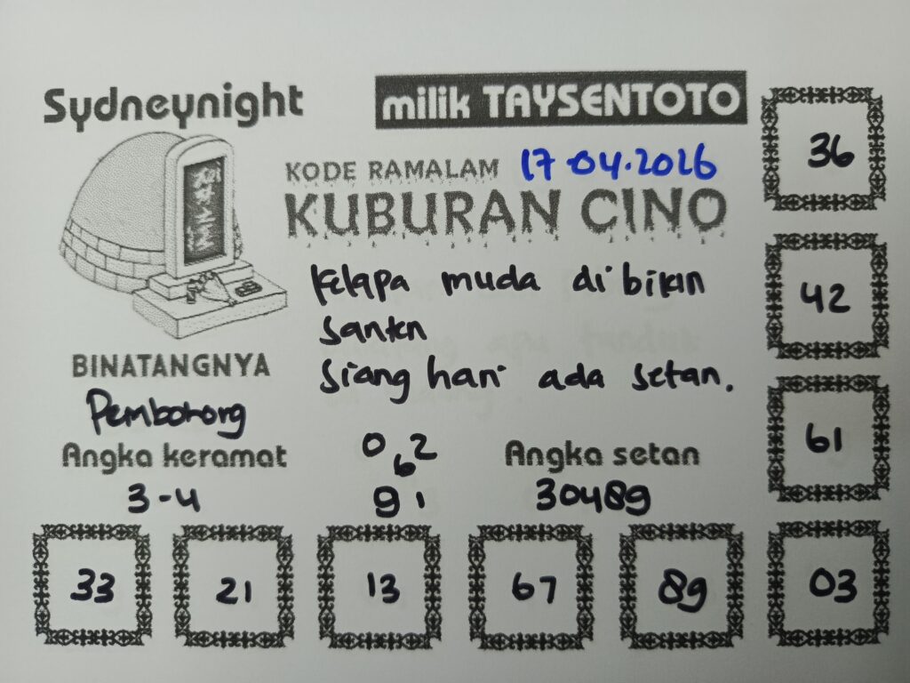 Syair Kuburan Cino SydneyNight Hari ini Jumat, 17 April 2026