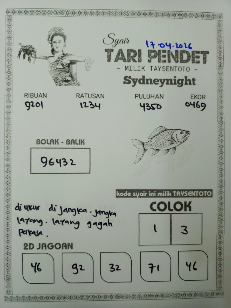 Syair Tari Pendet SydneyNight Hari ini Jumat, 17 April 2026