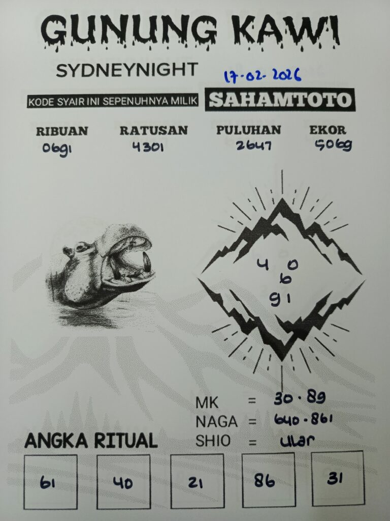 Syair gunung kawi Sydney Night Hari ini Selasa 17 Februari 2026