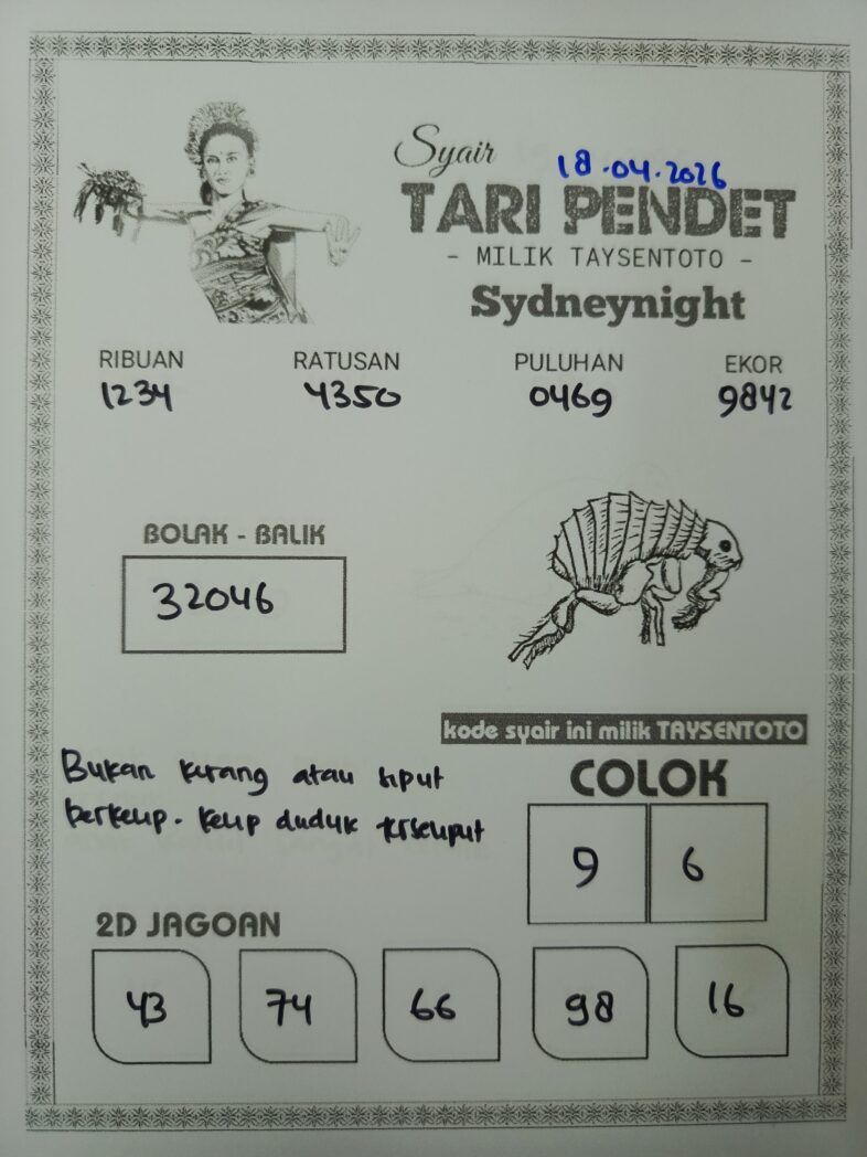 Syair Tari Pendet SydneyNight Hari ini Sabtu, 18 April 2026