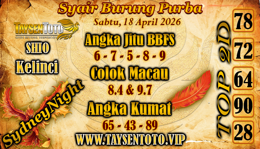 Syair Burung Purba SydneyNight Hari ini Sabtu, 18 April 2026