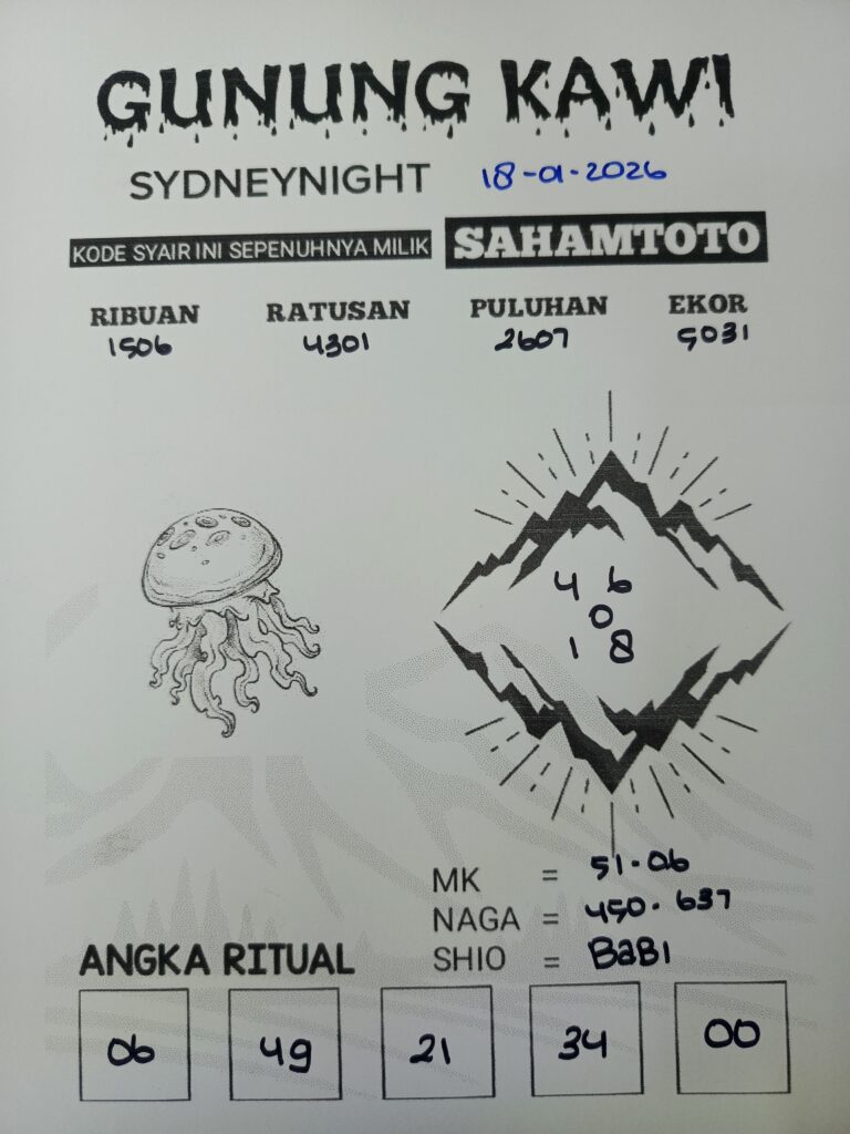 Syair Togel Sydney Night Hari Ini 18 Januari 2026