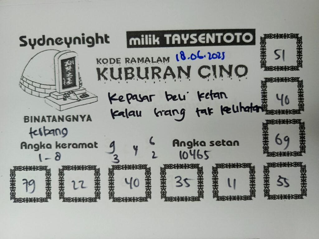 Syair Kuburan Cino SydneyNight Hari ini Rabu, 18 Juni 2025