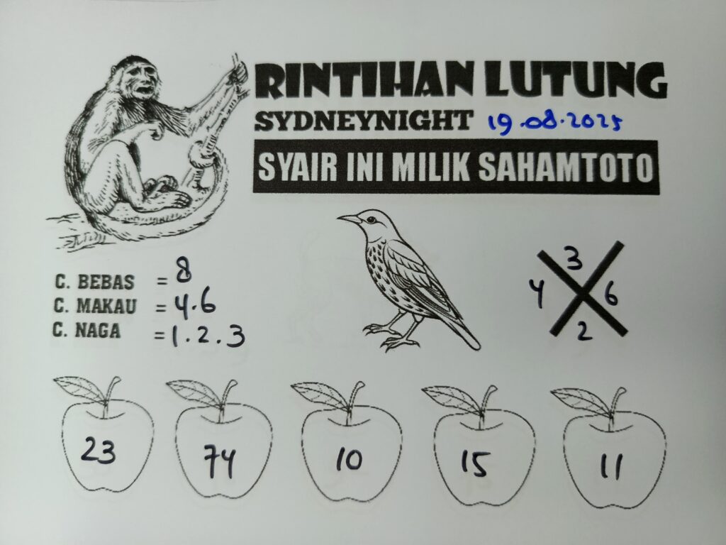 Syair Rintihan Lutung Sydney night Hari ini Selasa 19 Agustus 2025