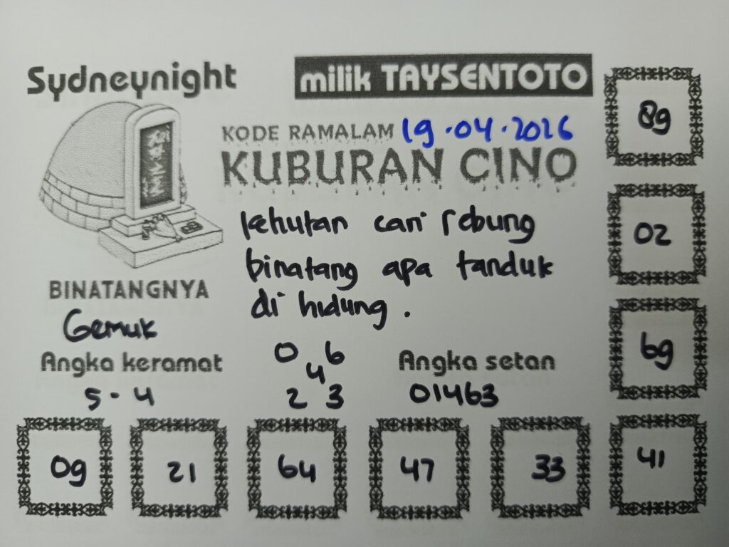 Syair Kuburan Cino SydneyNight Hari ini Minggu, 19 April 2026