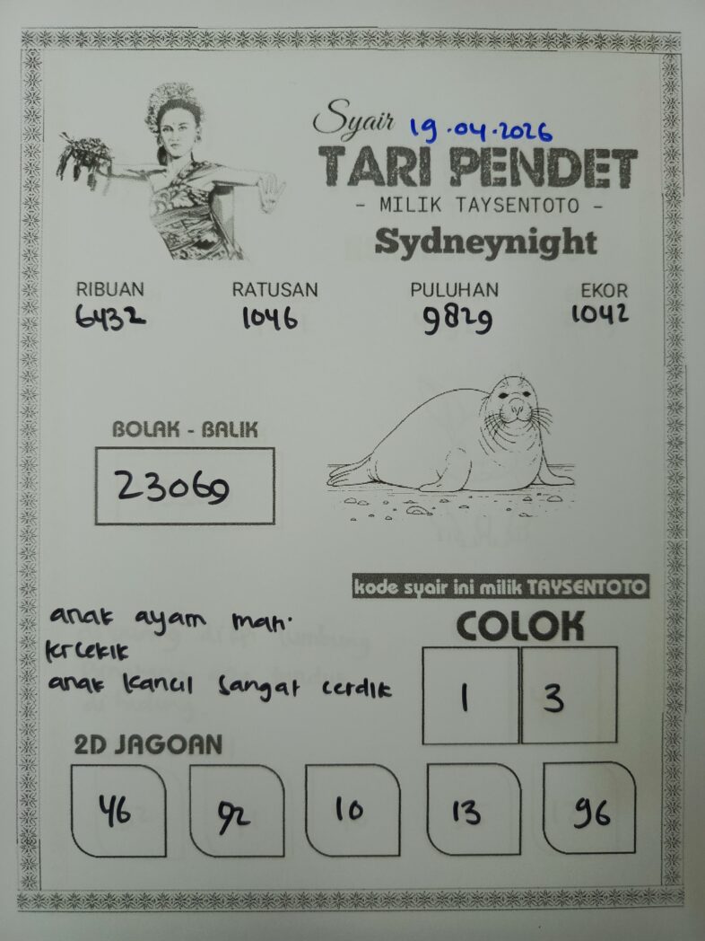 Syair Tari Pendet SydneyNight Hari ini Minggu, 19 April 2026