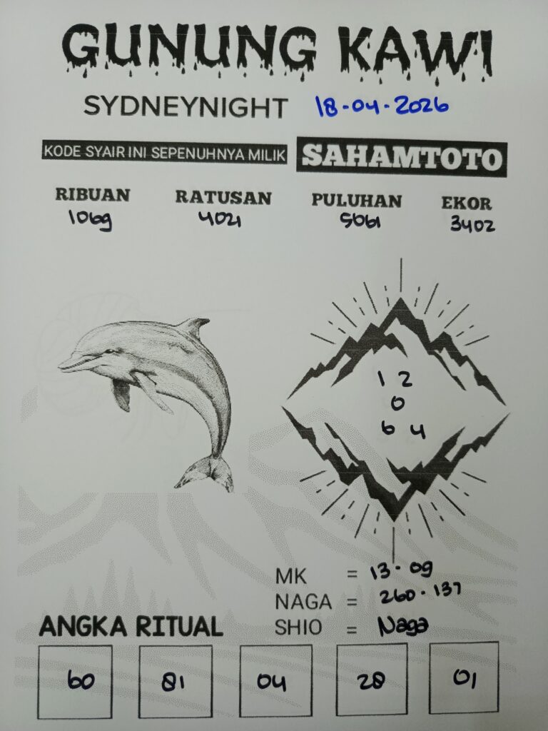 Syair Gunung Kawi SydneyNight Hari ini Jumat, 17 April 2026