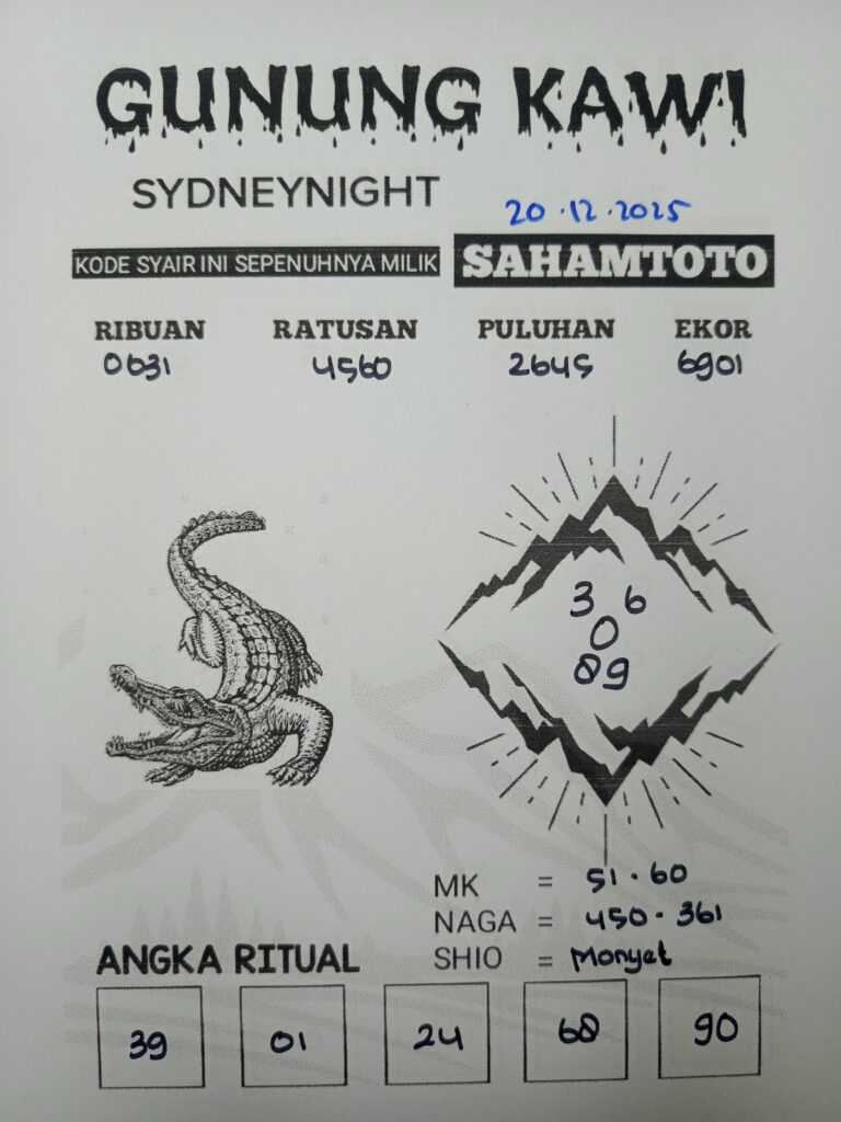 Syair Gunung Kawi Sydney Night Hari ini 20 Desember 2025