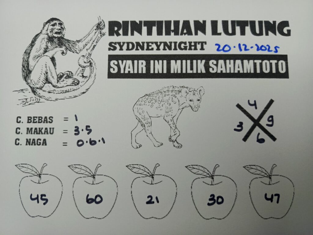 Syair Rintihan Lutung Sydney Night Hari ini 20 Desember 2025