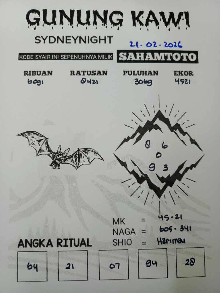 Syair gunung kawi Sydney Night Hari ini Sabtu 21 Februari 2026