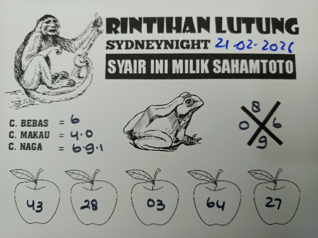 Syair Rintihan lutung Sydney Night Hari ini Sabtu 21 Februari 2026
