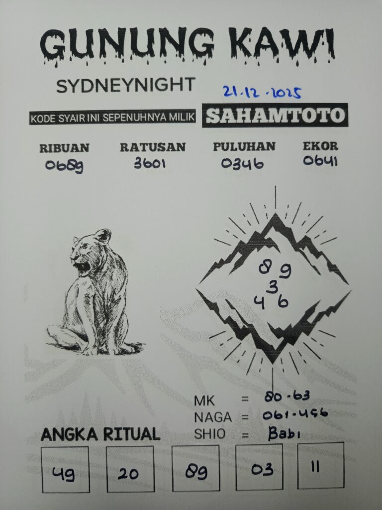 Syair Gunung Kawi Sydney Night Hari ini 21 Desember 2025