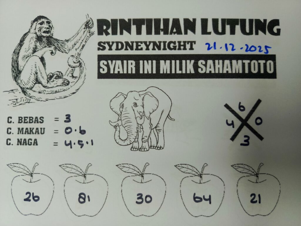 Syair Rintihan Lutung Sydney Night Hari ini 21 Desember 2025