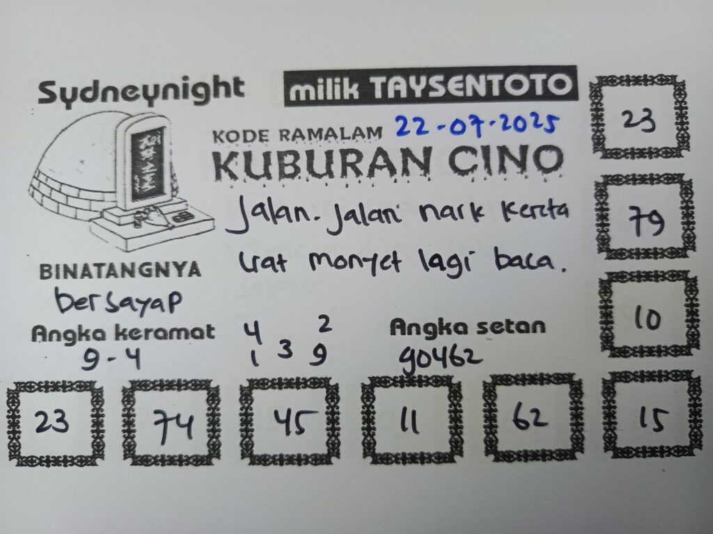 Syair Kuburan Cino SydneyNight Hari ini Selasa, 22 Juli 2025