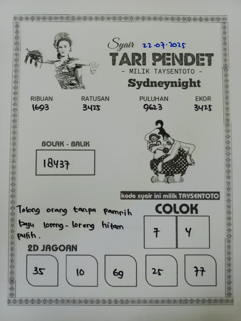 Syair Tari Pendet SydneyNight Hari ini Selasa, 22 Juli 2025