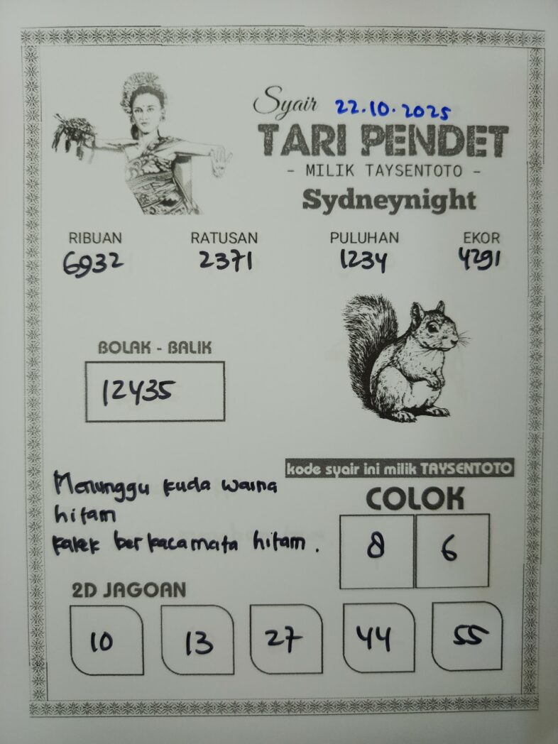 Syair Tari Pendet SydneyNight Hari ini Rabu, 22 Oktober 2025