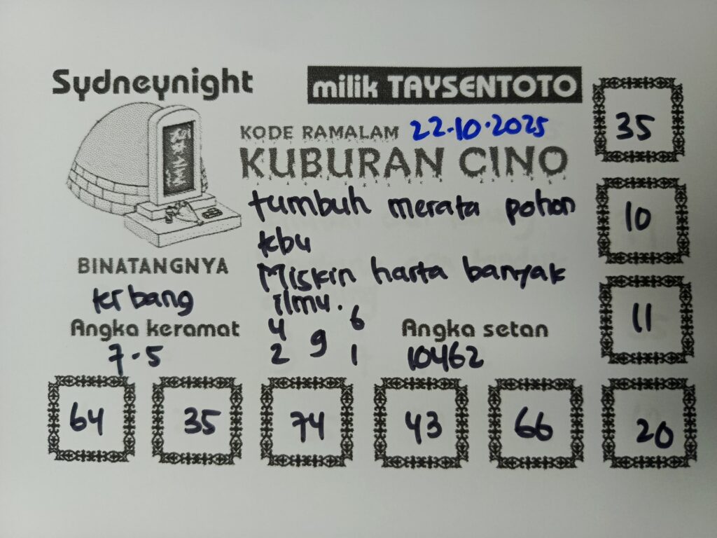 Syair Kuburan Cino SydneyNight Hari ini Rabu, 22 Oktober 2025