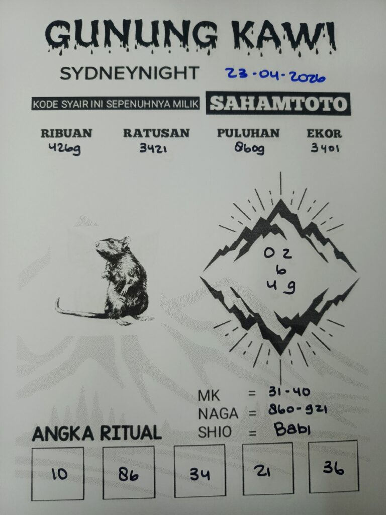 Syair Gunung Kawi SydneyNight Hari ini kamis, 23 April 2026