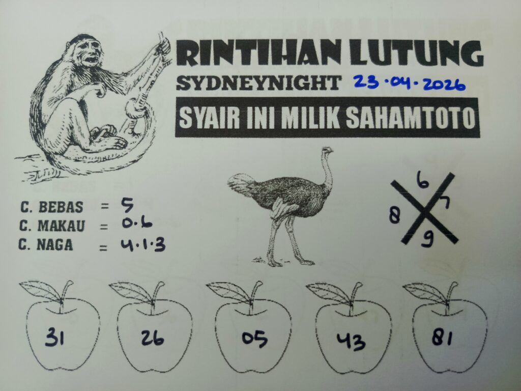 Syair Rintihan Lutung SydneyNight Hari ini kamis, 23 April 2026