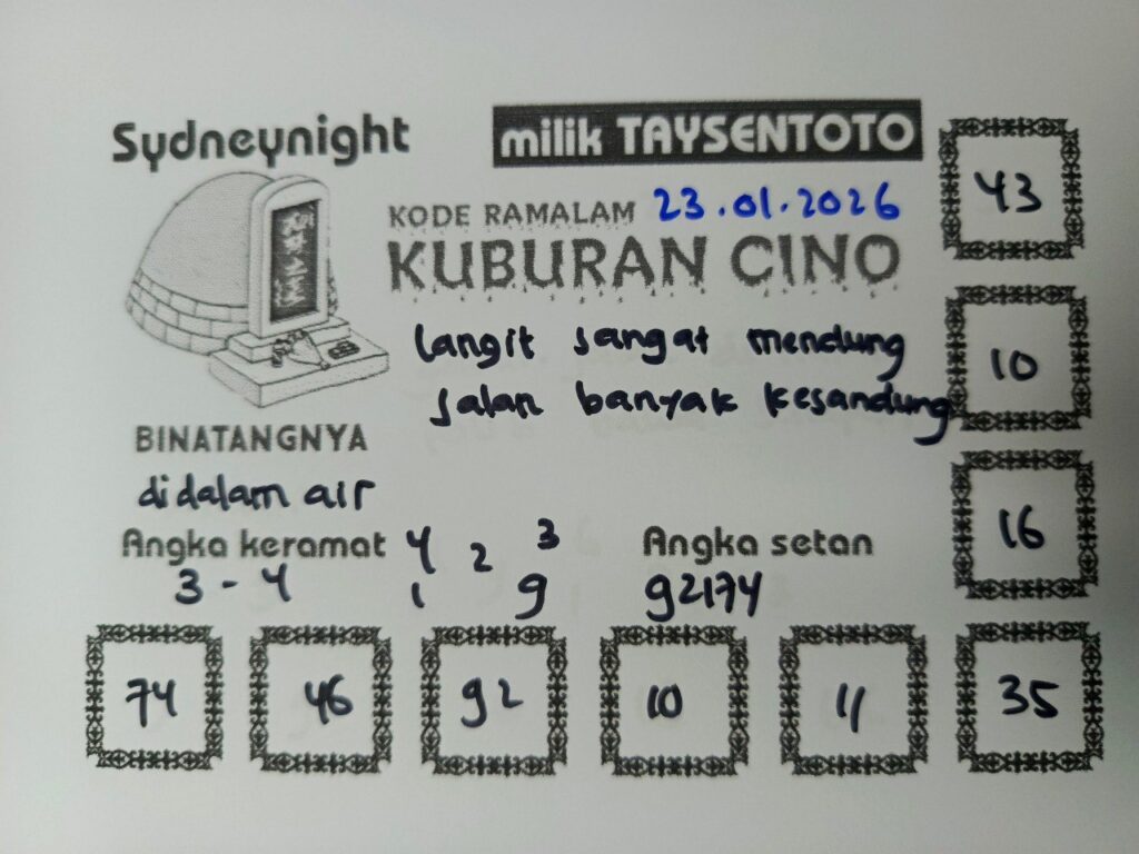 Syair Kuburan Cino SydneyNight Hari ini Jumat, 23 Januari 2026
