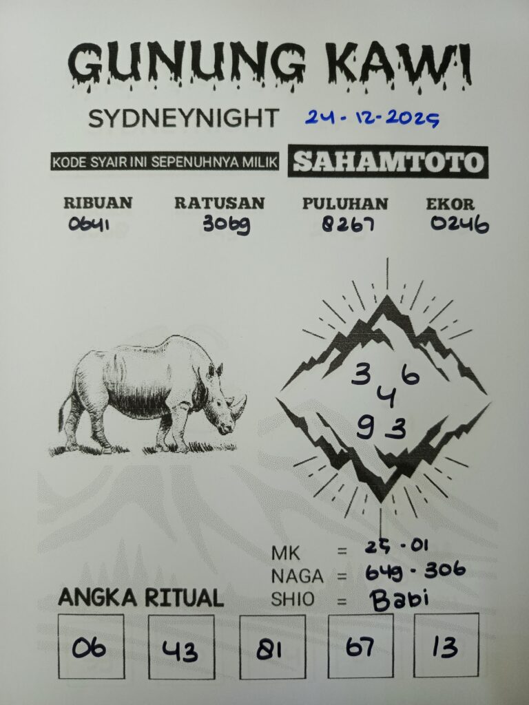 Syair Gunung Kawi Sydney Night Hari ini 24 Desember 2025