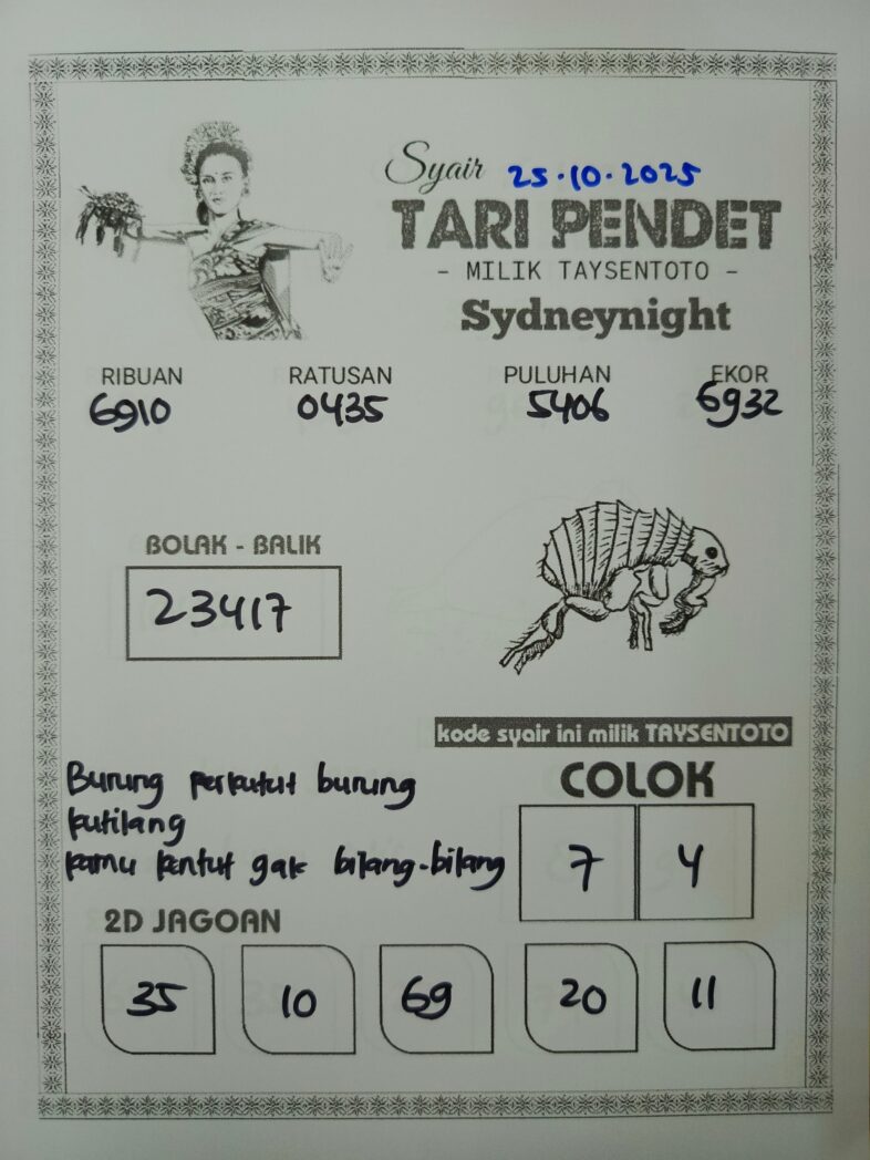 Syair Tari Pendet SydneyNight Hari ini Sabtu, 25 Oktober 2025
