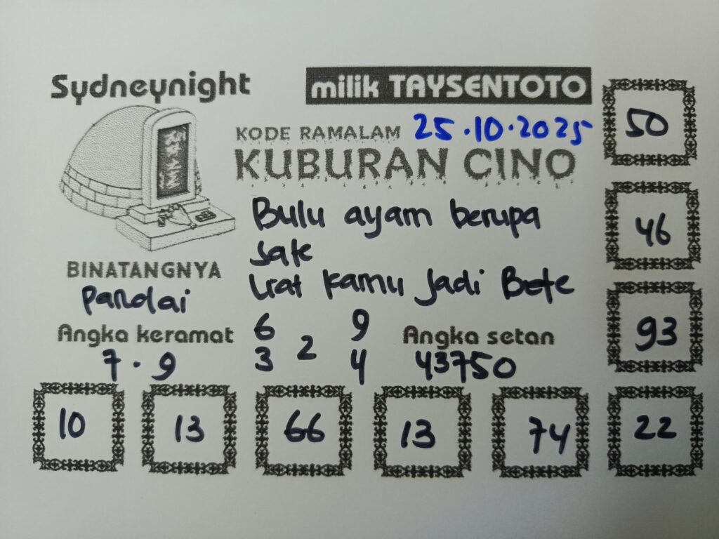 Syair Kuburan Cino SydneyNight Hari ini Sabtu, 25 Oktober 2025