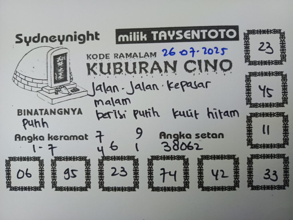 Syair Kuburan Cino SydneyNight Hari ini Sabtu, 26 Juli 2025