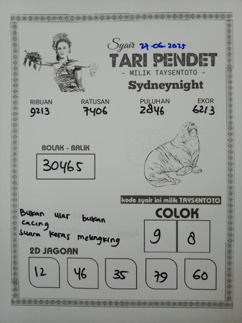 Syair Tari Pendet SydneyNight Hari ini Jumat, 27 Juni 2025