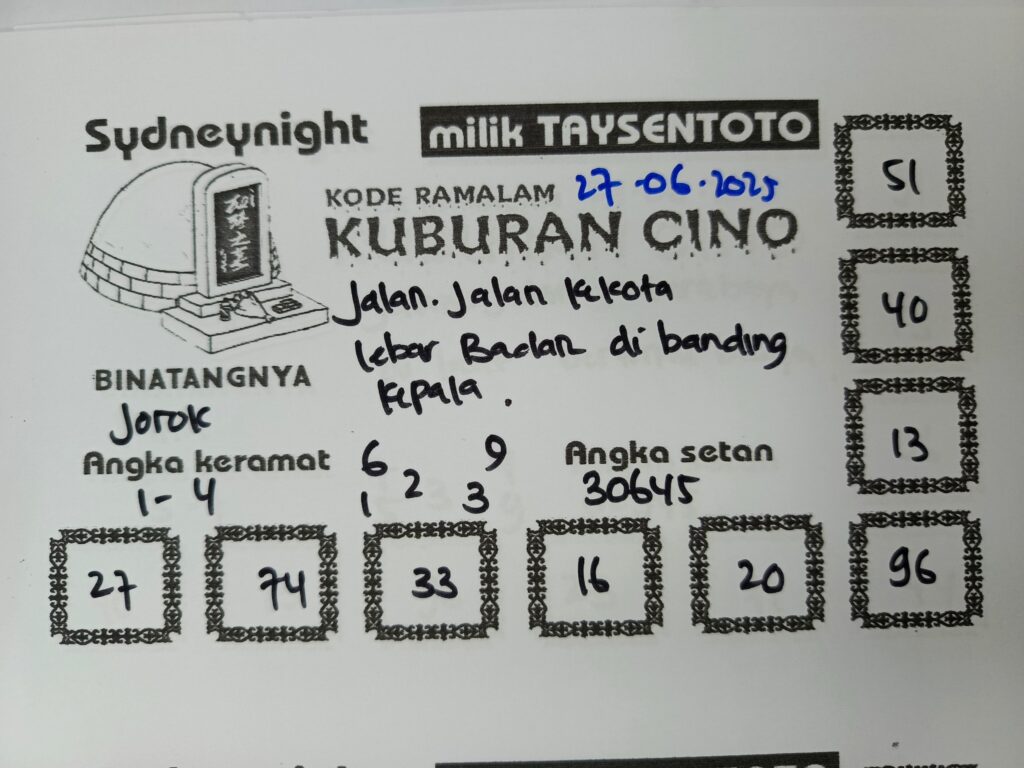 Syair Kuburan Cino SydneyNight Hari ini Jumat, 27 Juni 2025