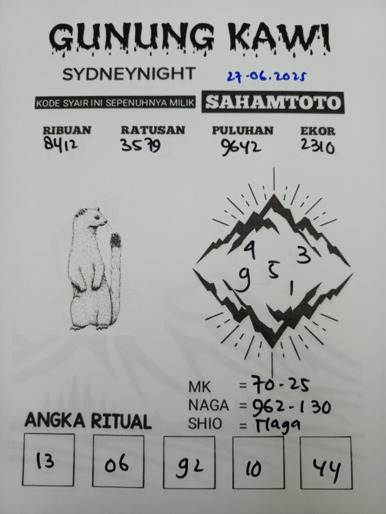 Syair Gunung Kawi Sydney Night Hari ini Jumat 27 Juni 2025