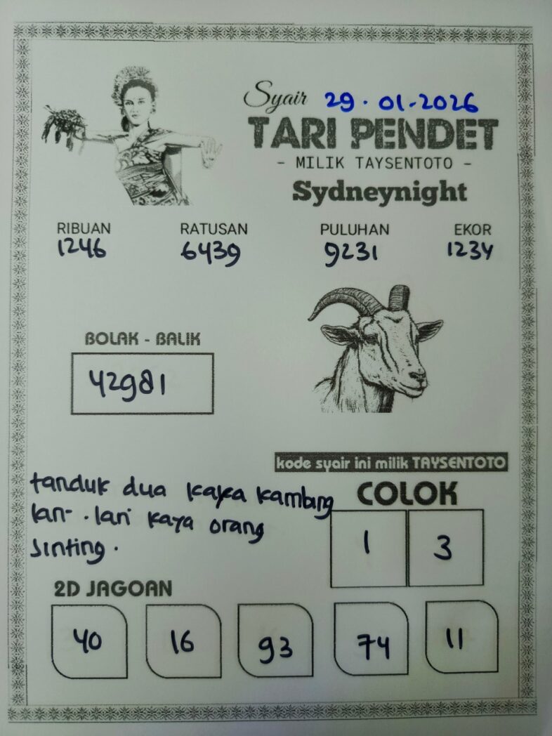 Syair Tari Pendet SydneyNight Hari ini Kamis, 29 Januari 2026