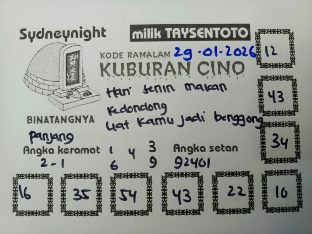 Syair Kuburan Cino SydneyNight Hari ini Kamis, 29 Januari 2026