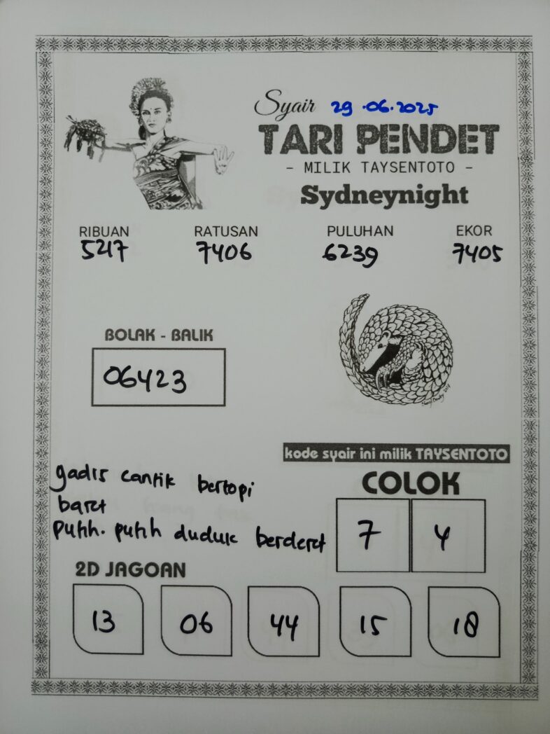 Syair Tari Pendet SydneyNight Hari ini Minggu, 29 Juni 2025