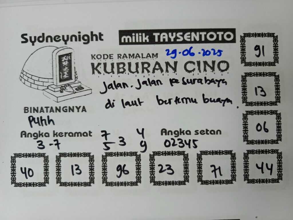 Syair Kuburan Cino SydneyNight Hari ini Minggu, 29 Juni 2025