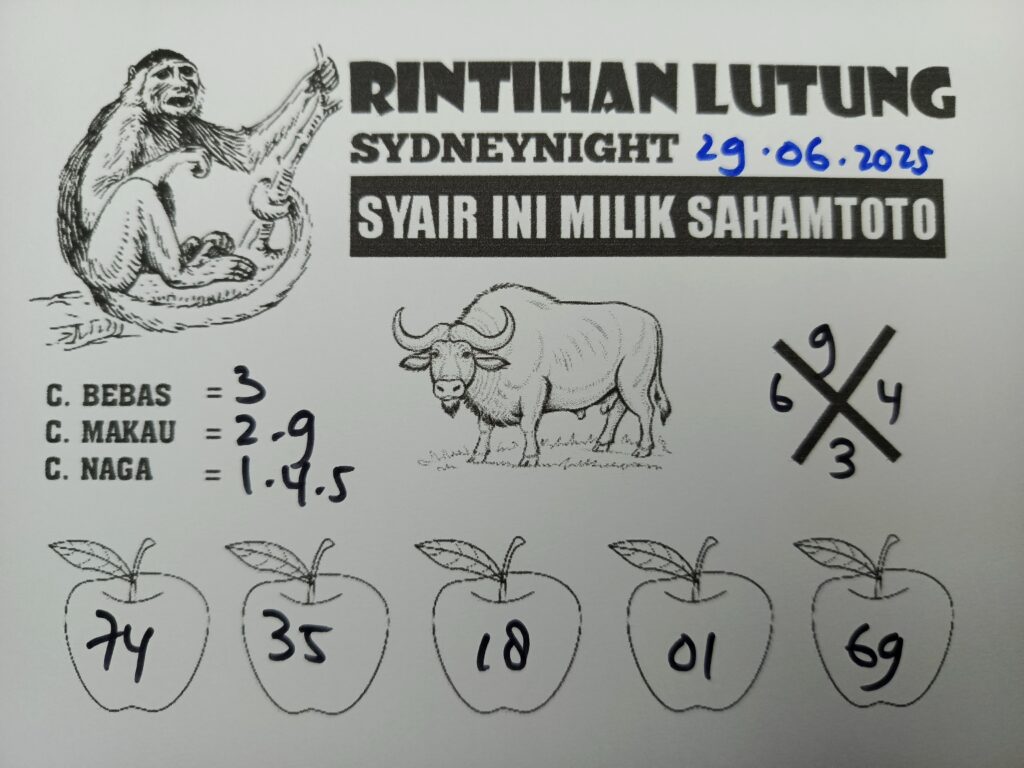 Syair Rintihan Lutung Sydney Night Hari ini Minggu 29 Juni 2025