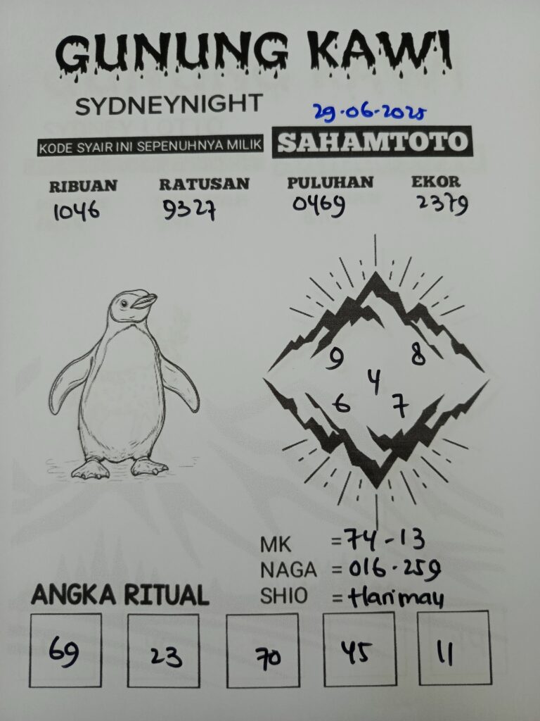 Syair Gunung Kawi Sydney Night Hari ini Minggu 29 Juni 2025