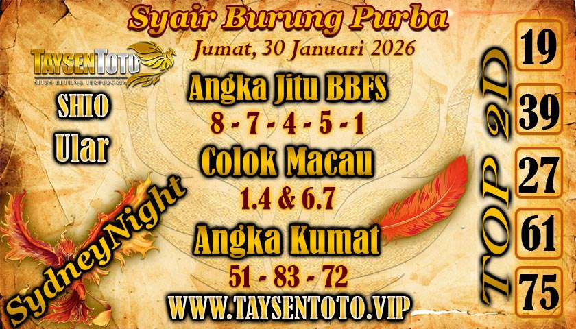 Syair Burung Purba SydneyNight Hari ini Jumat, 30 Januari 2026