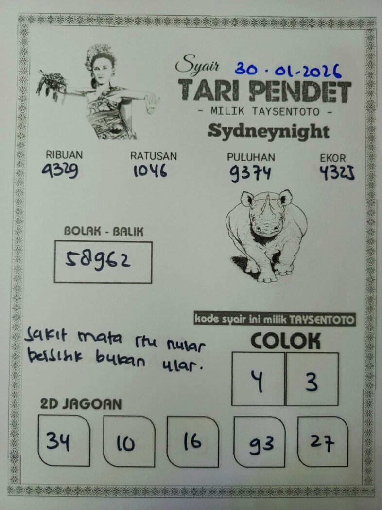 Syair Tari Pendet SydneyNight Hari ini Jumat, 30 Januari 2026
