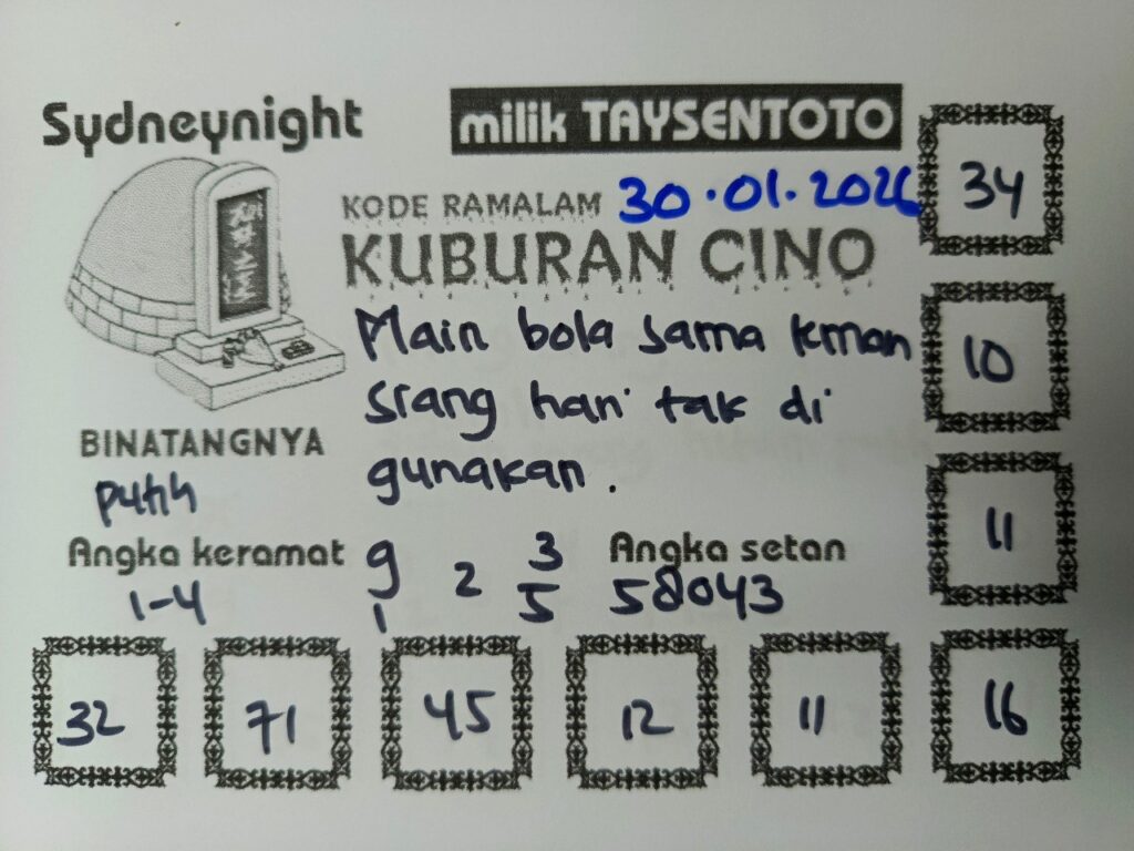 Syair Kuburan Cino SydneyNight Hari ini Jumat, 30 Januari 2026