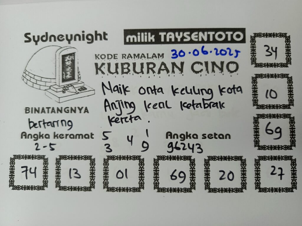 Syair Kuburan Cino SydneyNight Hari ini Senin, 30 Juni 2025