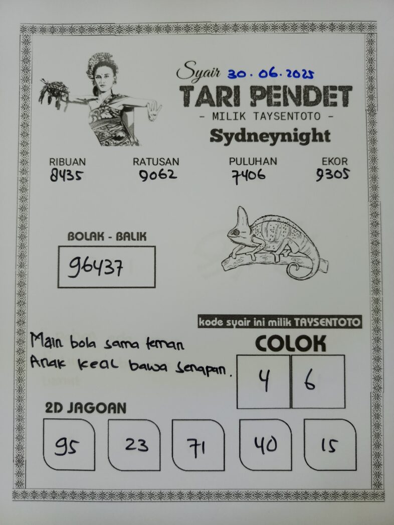 Syair Tari Pendet SydneyNight Hari ini Senin, 30 Juni 2025