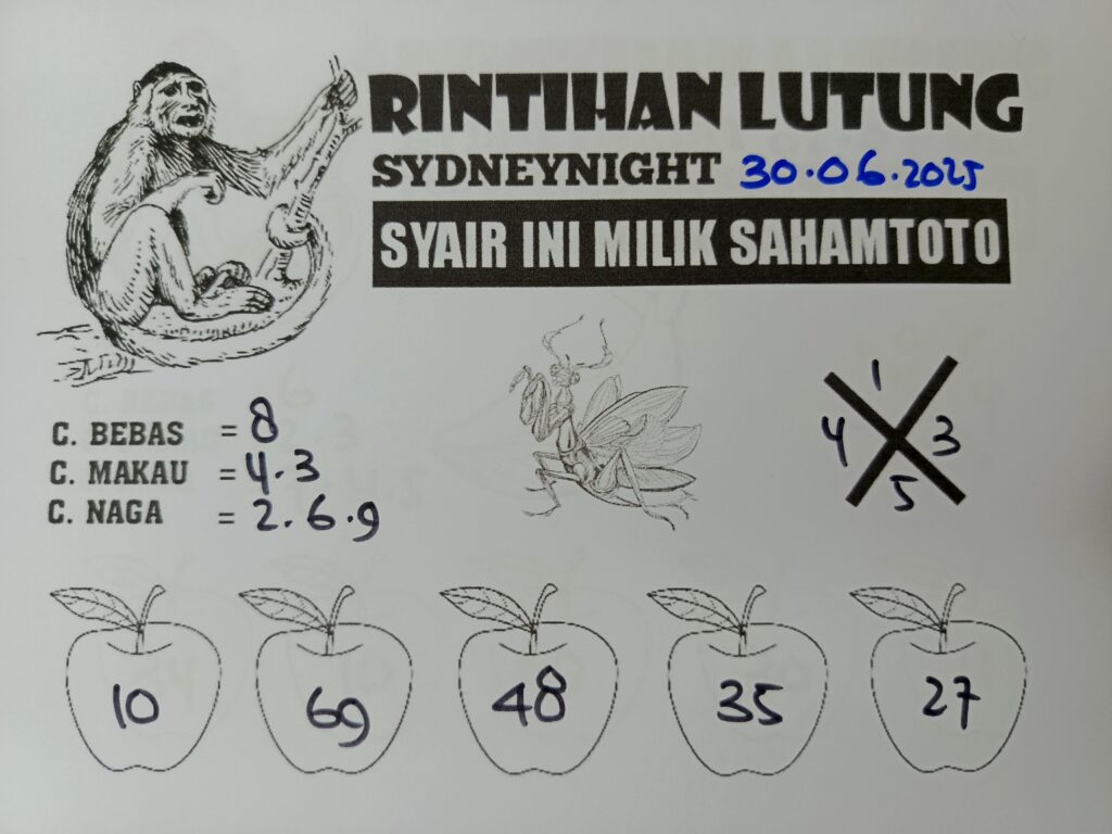 Syair Rintihan Lutung Sydney Night Hari ini Senin 30 Juni 2025