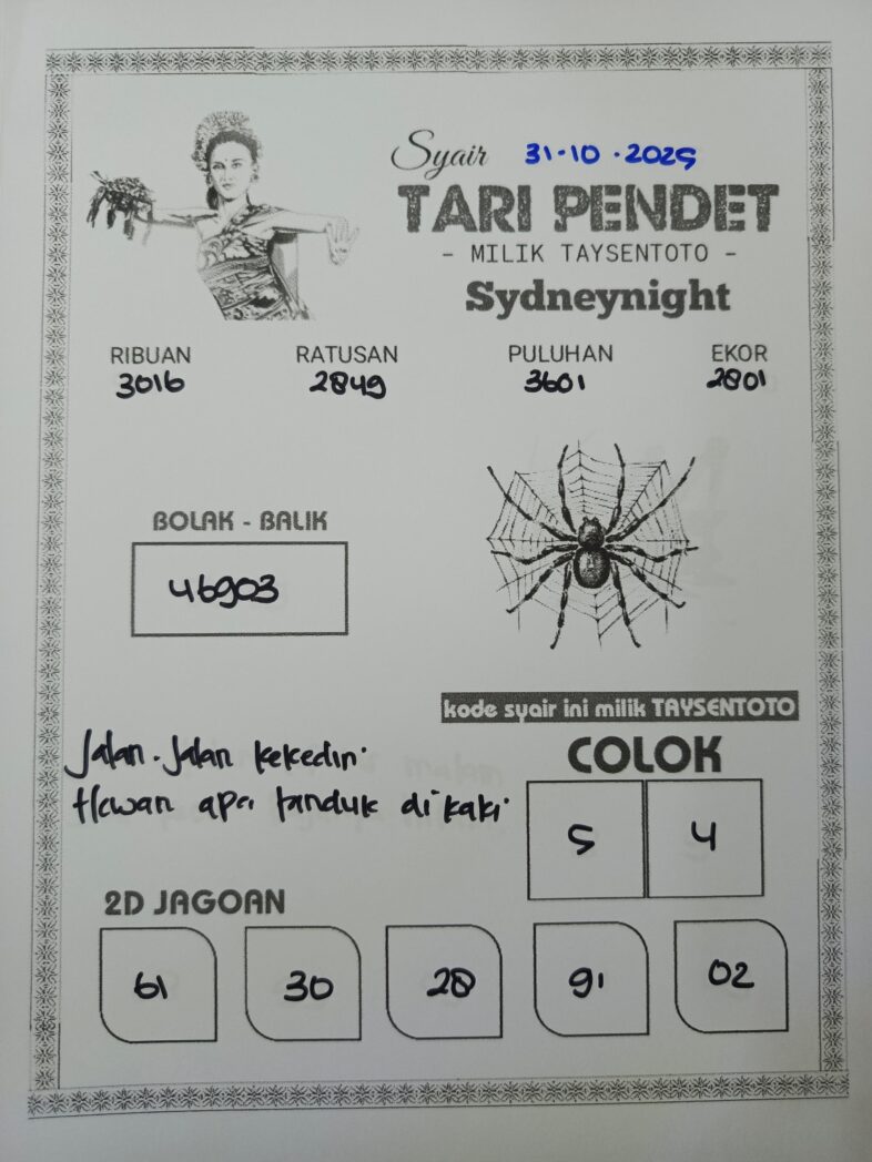Syair Tari Pendet SydneyNight Hari ini Jumat, 31 Oktober 2025
