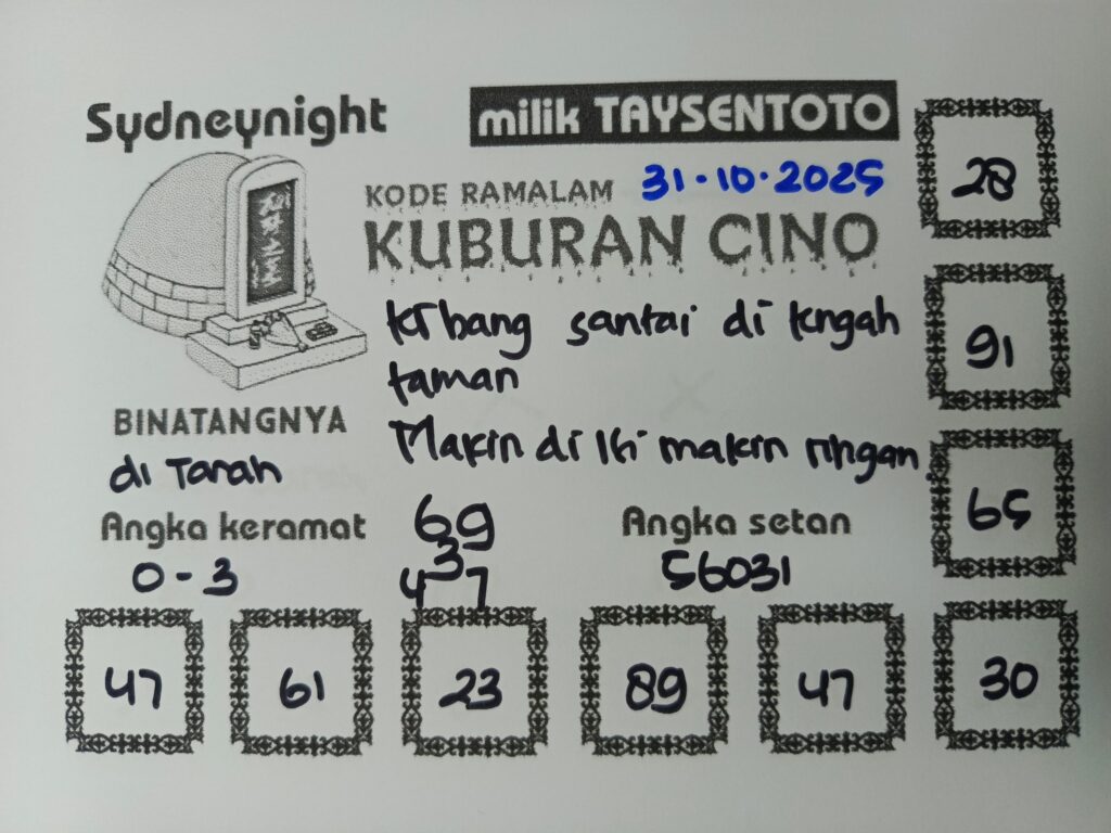 Syair Kuburan Cino SydneyNight Hari ini Jumat, 31 Oktober 2025