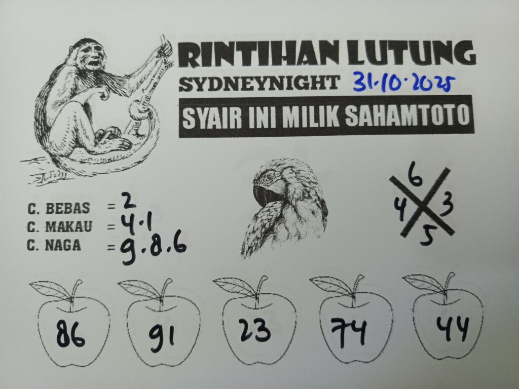 Syair Rintihan Lutung SydneyNight Hari ini Jumat 31 Oktober 2025