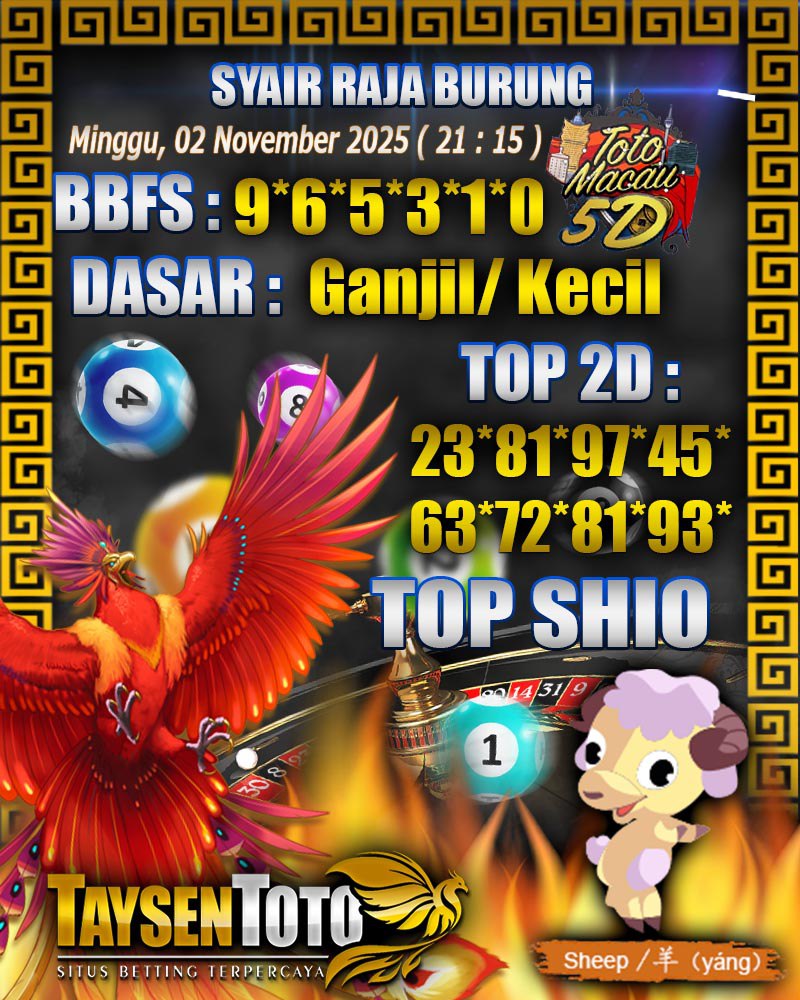 Syair Raja Burung Toto Macau 5D Hari Ini Minggu, 02 November 2025| 21 : 15 WIB